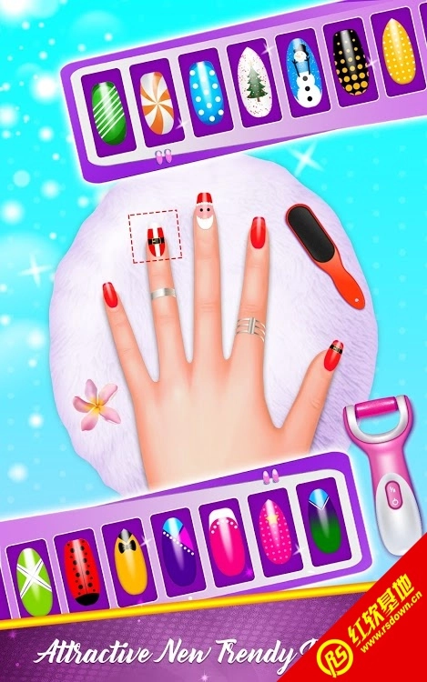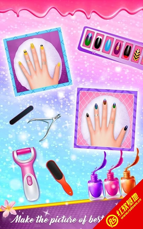 3.女孩指甲时尚沙龙能让你变身美甲超级设计师,这里有可爱的少女贴纸和水钻,搭配上惊艳的动画效果与精美的图形,打造专属美甲风格。