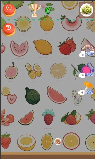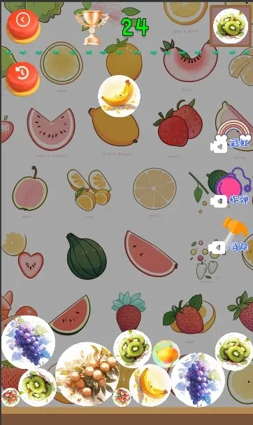 2、从小小的水果开始消除,不断合成升级,获取更大的水果;