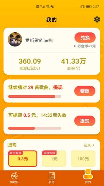 1.猜歌大全的玩法极具挑战性。每日挑战参与答题的人很多,红包奖励遵循先到先得的规则;