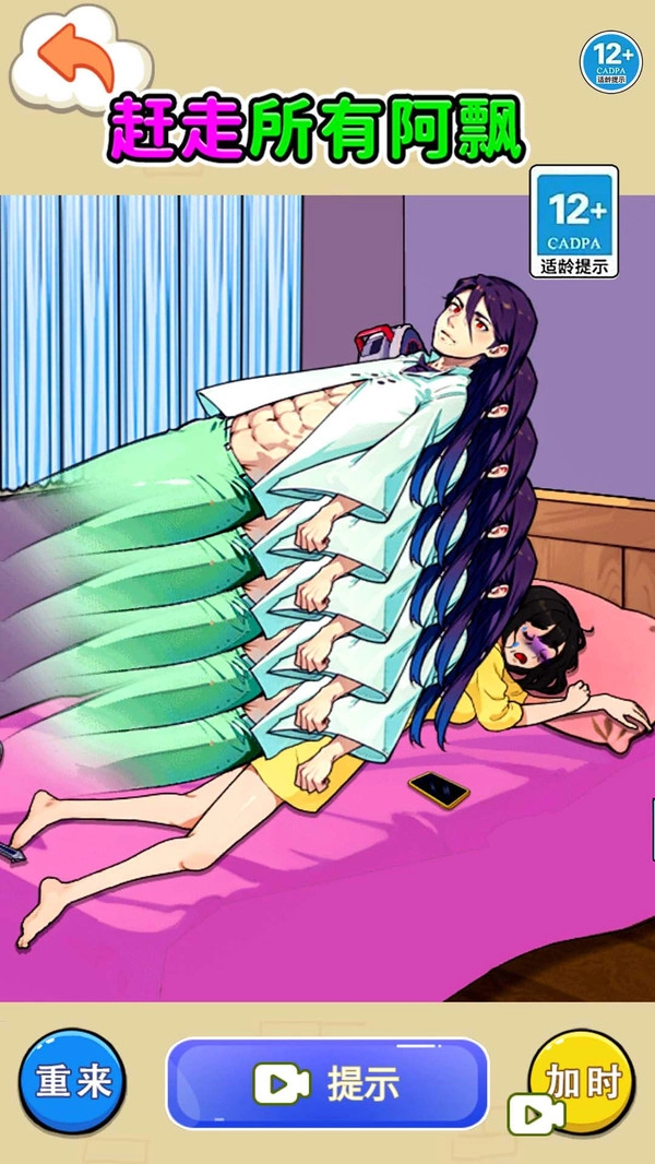 玩家需要想办法帮女孩赶走身边所有阿飘,让她能安稳睡觉。故事发生在女孩的卧室里,她被一群吓人的阿飘围着,没法入睡。玩家得观察周围环境,分析阿飘的行动规律,找到它们的弱点,才能制定出最有效的驱飘策略。小美晚上睡觉时被阿飘压身,快动脑筋合理利用道具,帮她赶走所有阿飘,来挑战一下吧!