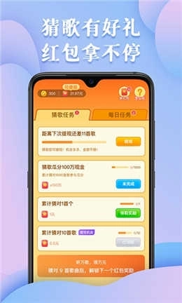2.依据序言内容,通过猜歌来回答问题,答对就能领取红包。每日的挑战都十分有意思。
