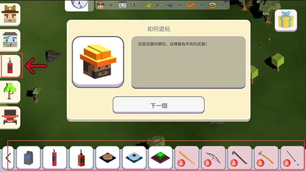 7、这是信息按钮,可以帮助你制造更多的武器;