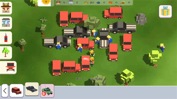 3、选好车辆后,下方会有一行小字显示该车辆的属性,像小编选的赛车就带有加速功能,点击图里任意位置就能把车布置到地图上啦!