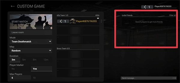 4、在自定义模式里完成左侧模式的设定后,在右侧的邀请朋友区域选择邀请好友就行。(需要注意的是,好友只有通过添加验证后才会出现在右侧列表中)