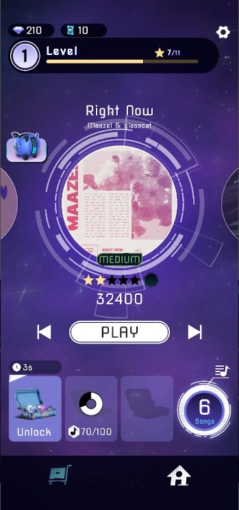 GroovyGalaxy音乐是一款音乐主题的节奏游戏,玩家能在其中感受音乐魅力,挑战自身的节奏感与反应能力。游戏中,玩家需跟随音乐节奏点击屏幕上不同位置的音符,根据节奏快慢和音乐变化完成各类挑战。它拥有丰富多样、风格各异的音乐曲目,让玩家可以尽情享受音乐带来的乐趣。