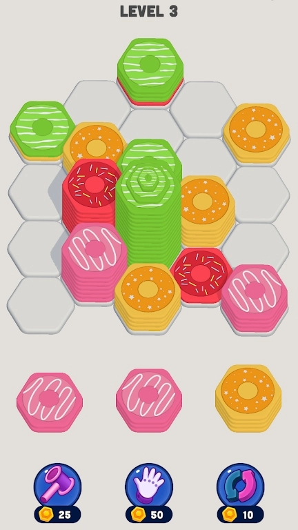 这是一款名为甜甜圈六边形排序的休闲闯关游戏,在游戏中你需要不断进行消除操作。要特别留意颜色不同的甜甜圈,目标是消除所有异类甜甜圈。游戏提供多个关卡供你选择,能带给你最真实的竞技体验,堪称老少皆宜、值得一试的佳作,感兴趣的话就快来体验吧!