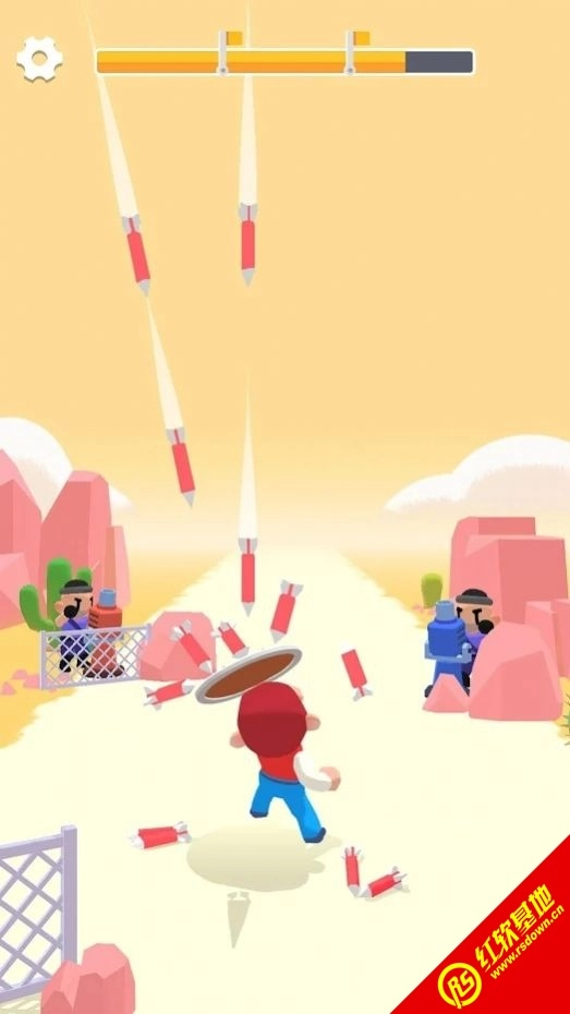 一场十分有趣的生存竞技游戏,采用卡通3D风格打造。在游戏里,玩家能够操控自己的角色利用盾牌来规避伤害。游戏的画面十分新颖,而且关卡中可能会出现大量导弹。当遭遇撞击时,需要精准地使用防护罩来防止角色受损,让我们一起来试试吧。