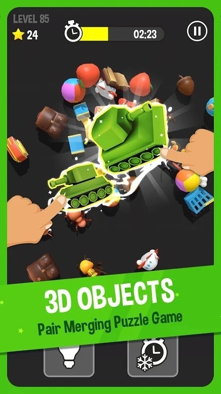 在“凑对大师3D”的在线配对玩法中,玩家将开启闯关之旅,通过挑战提升等级并获取丰富的活动奖励。各类道具能助力你更高效地完成对决,游戏的3D场景与特效制作精良,画面清晰且背景音乐适配度高。此外,游戏设有倒计时机制,玩家需在规定时间内完成挑战,核心玩法为将相同物品进行组合配对。