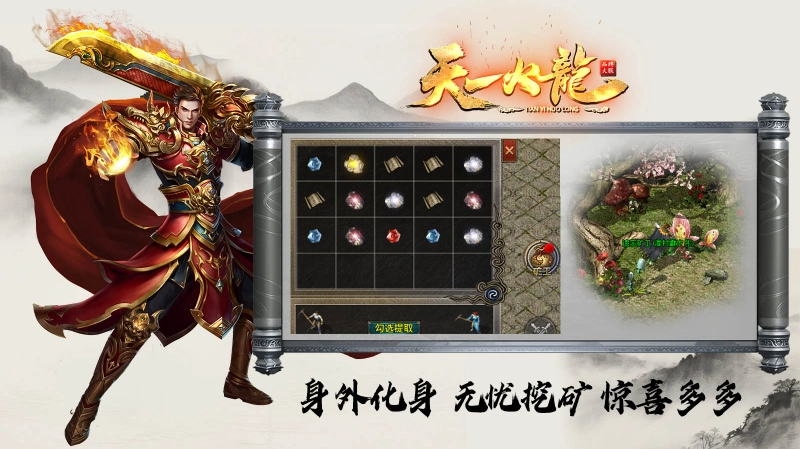 天一火龙的极品装备爆率直接拉满,装备品质越高,价值就越逆天,让你尽情享受追梦的快感!这里还复刻了经典的分身挖矿玩法,带你重温当年那段热血怀旧的时光!不止如此,你还能根据不同的战斗场景自由搭配天赋,打造出属性拉满的专属神装!更有个人专属的神龙副本等你来挑战,未知的挑战层出不穷,激爽体验直接拉满!