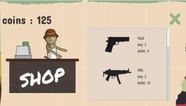 3、游戏包含生存和闯关两种模式,玩家可使用击杀僵尸所得的金币来购买新的武器装备。