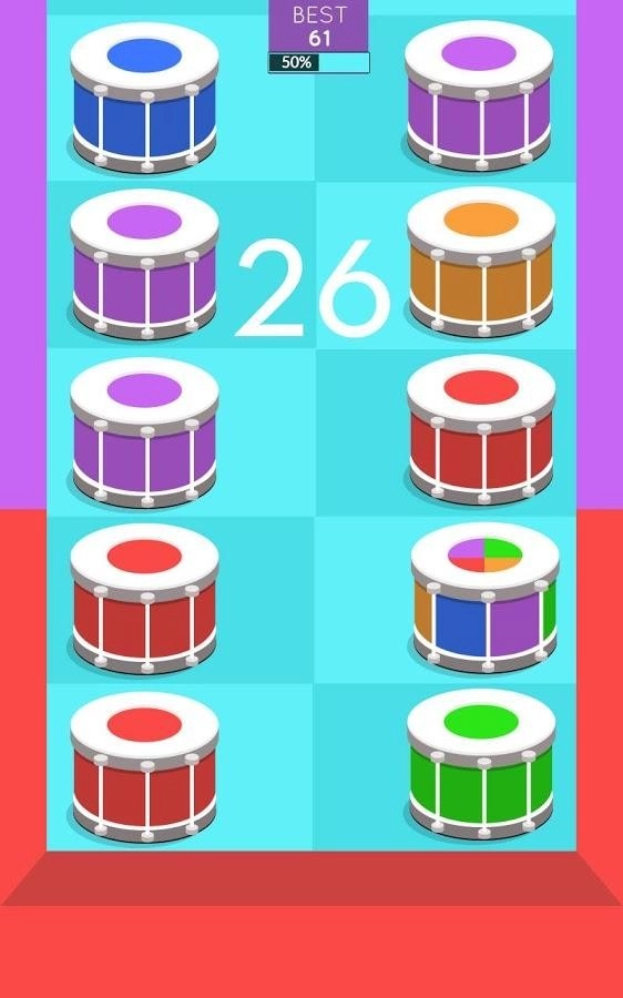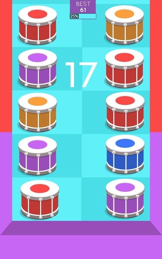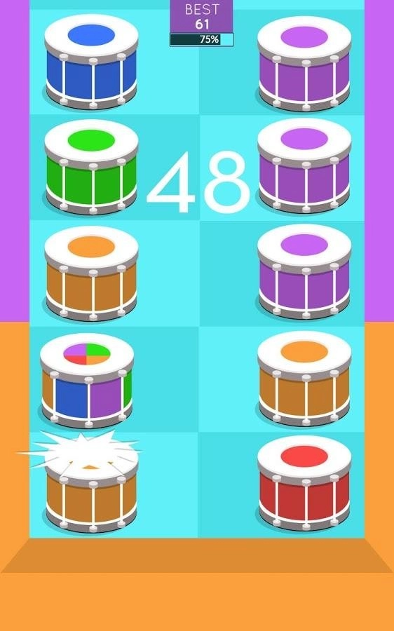 背景色处于持续变化的状态,在游戏里,你得在鼓下落的过程中敲击颜色相同的鼓。要是有任何瓷砖落到屏幕底部,游戏就结束了,你必须重新开始……这是一种让人目不暇接的体验,绝对能考验你的反应能力和专注程度!