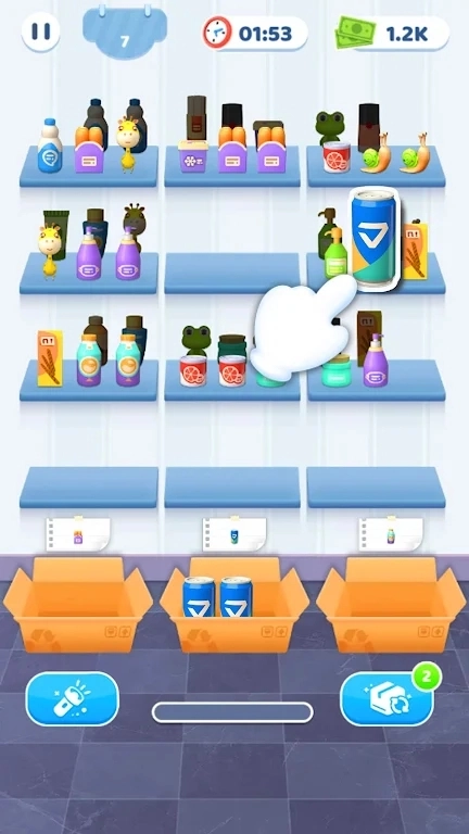 这是一款休闲闯关类的货架排序游戏,你需要通过不断分类排序,把所有相同的货物归置到一起。游戏玩起来轻松减压,能让你在其中锻炼分类归纳能力。它采用卡通画风,操作方式简单易上手,老少皆宜,喜欢的话就快来体验吧!