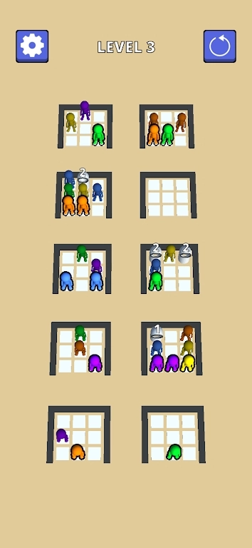 1、不同颜色的小人混合在一起,玩家需要将其分类;