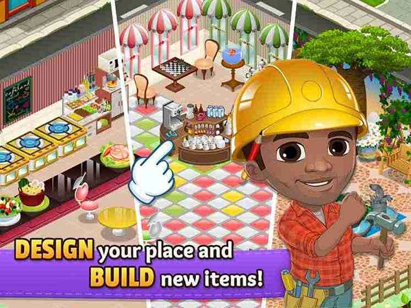 4、发挥你的烹饪技能,从菜单中挑选食物为顾客提供服务。你也能借助各类装饰品,打造专属于自己的餐厅。