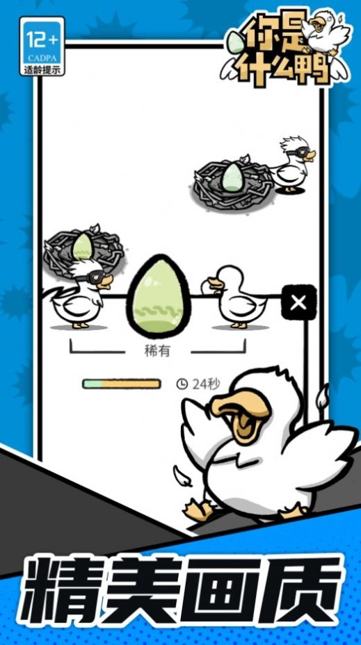 你是什么鸭,这是一款创意满满的休闲闯关游戏,能让鸭子快速成长,你可以培养专属于自己的鸭子。游戏采用黑白画风,玩家既能喂养小鸭子,还能收集各类道具,乐趣多多,更能解锁新奇玩法。每只鸭子都有独特特性,快来体验吧~