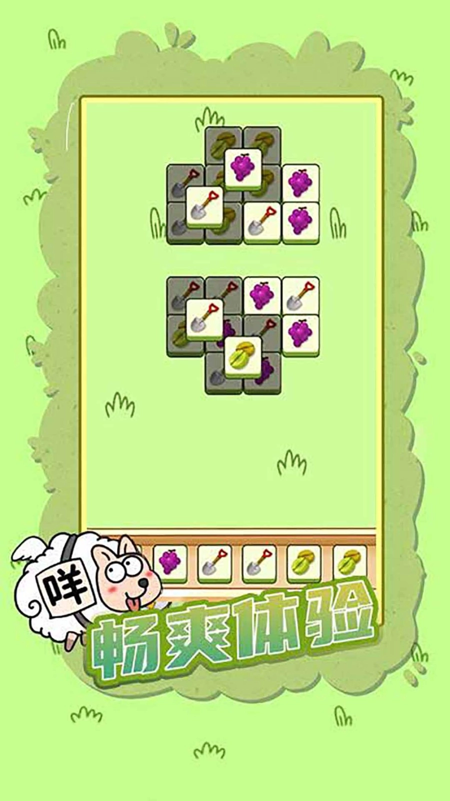 1.这一关难度很高,核心玩法依旧是消除类,只要把三个相同的图案放入卡槽就能完成消除。