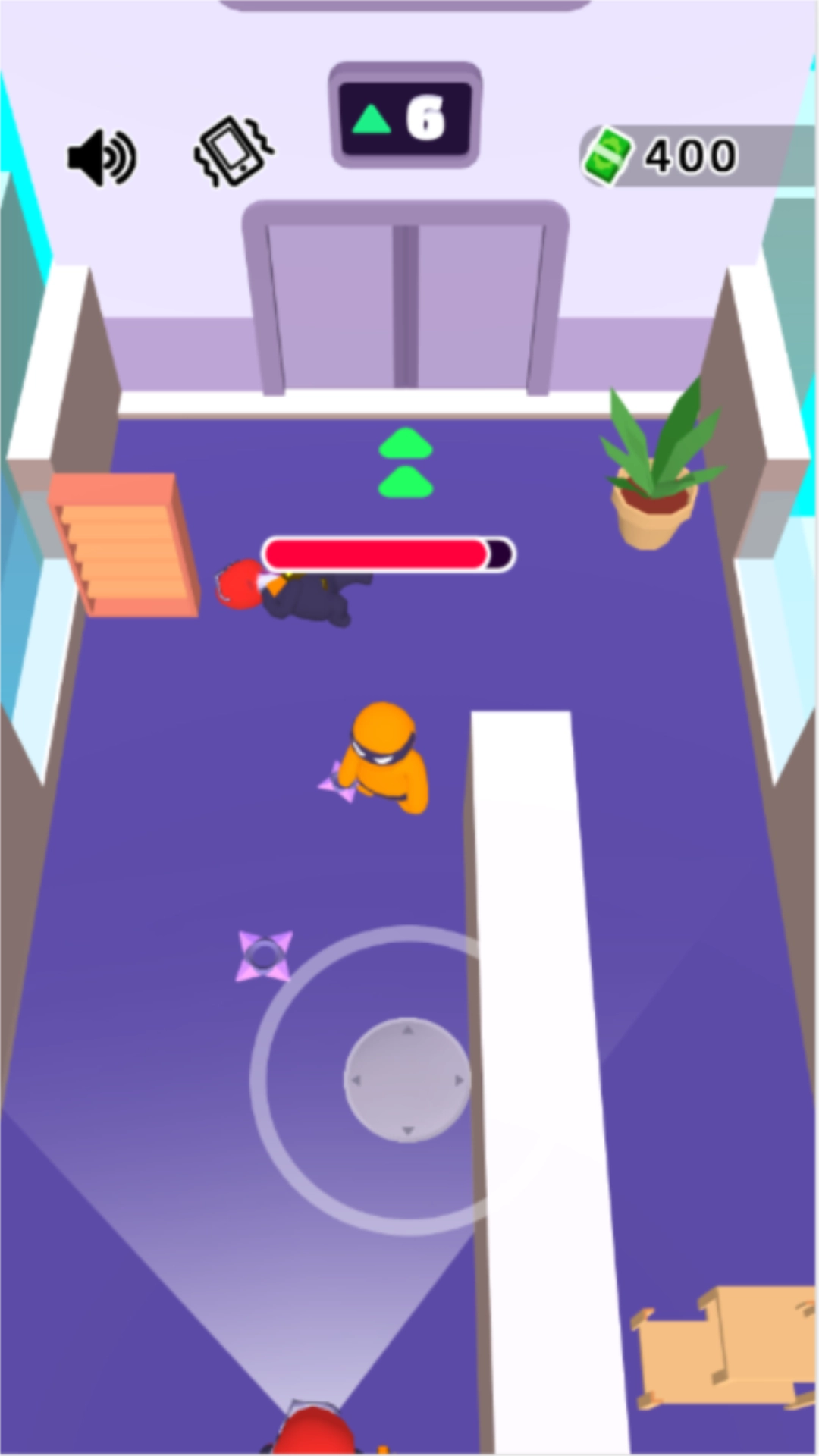 3、玩家需避开敌人的视线,从其身后发动攻击将其击杀,就能进入下一关。