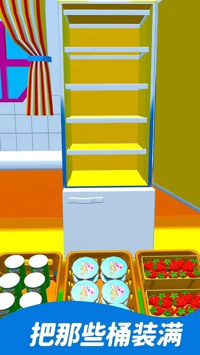 2、充满欢乐的体验,最终目标是把所有物品都放进冰箱。