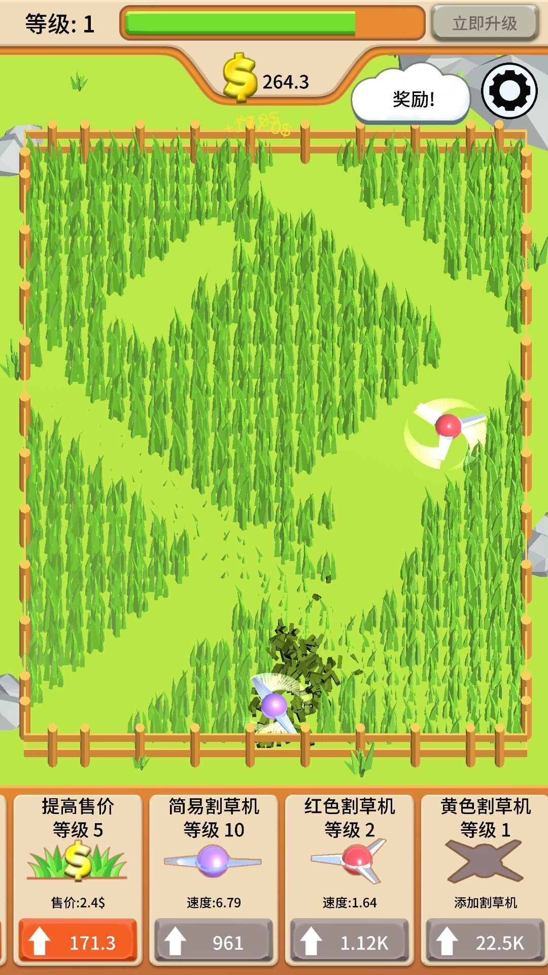 2、有趣的游戏过程,简单指尖滑动操作,进行刺激的割草;