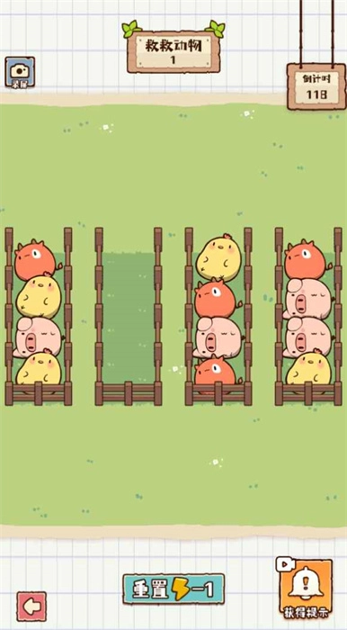 3、将相同的小动物拖动到对应的围栏里完成挑战,以此达成给定的目标任务。