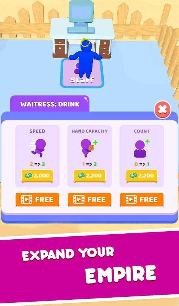 2、管理您的餐厅与闲置资金,实现真正的财富积累,通过装修餐厅、准备餐食以及制定策略来建立属于自己的商业帝国;