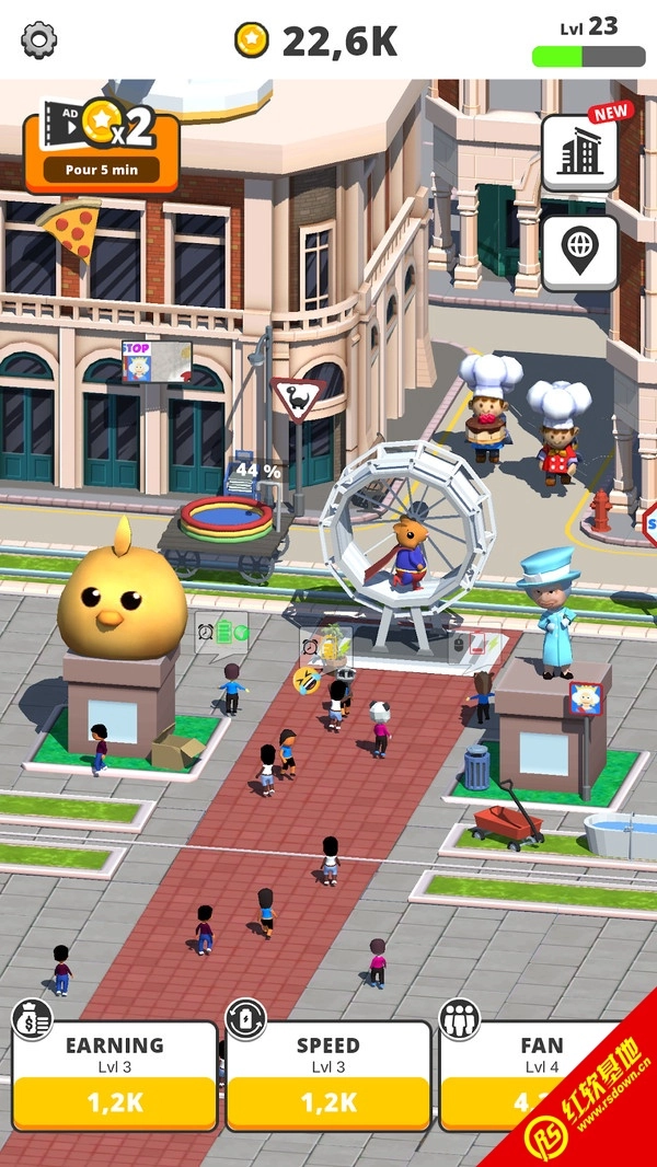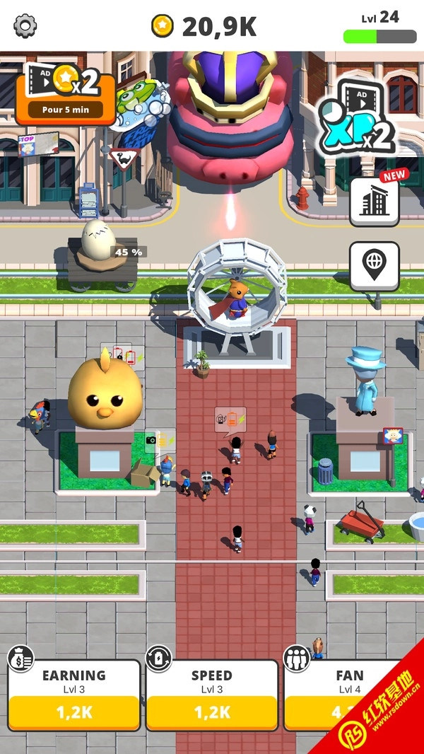 2.这个巨大的功能设置在城市的广场上,每个人都可以来观看这些小仓鼠的奔跑。您还可以使用一些道具使他更快地奔跑。