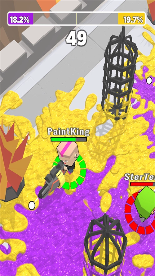 喷射大作战是一款休闲益智游戏,整体画面采用卡通风格。玩家主要操控角色完成各类喷漆挑战,目标是占领所有区域的喷漆覆盖,达成即可获胜并完成任务。过程中需留意避免被对手喷到油漆,一旦被喷就会失败,因此需要格外小心。