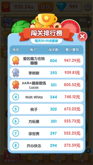 1.游戏里融入了各种各样的水果元素,玩家得通过巧妙的搭配与消除来达成关卡目标,从而解锁更多趣味内容。