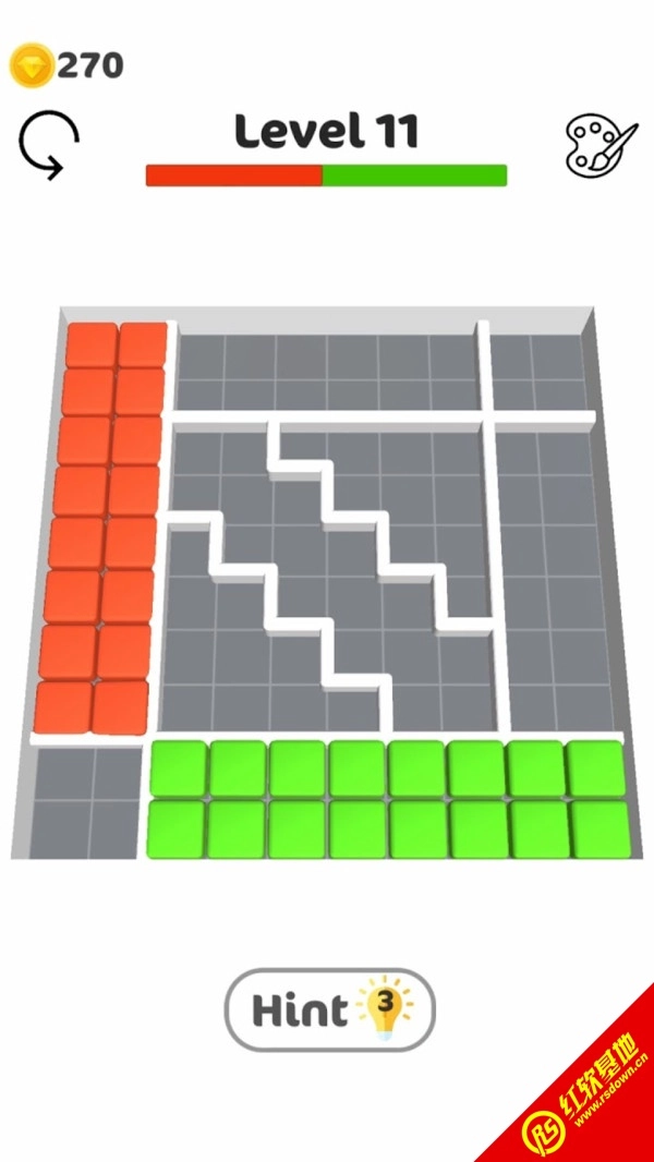 1.有两个不同颜色的方块供玩家挑战。您的目标是赢得基石,占领整个关卡。