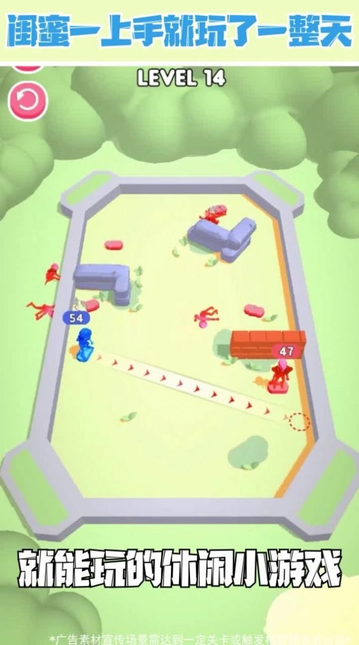 这是一款休闲有趣的解压游戏。玩家可以通过调整画线方向来增加游戏场次。游戏内提供了丰富的道具供选择。玩家需要根据自身的伤势情况和所画线条的方向来进行战斗。游戏画面采用经典的卡通风格,背景音乐带有魔幻色彩。玩家可以按照自己的方式来展开战斗。