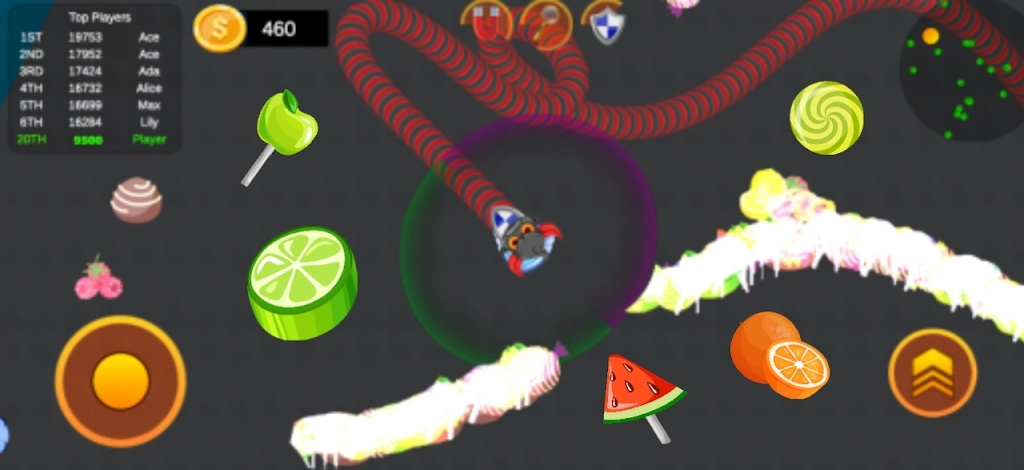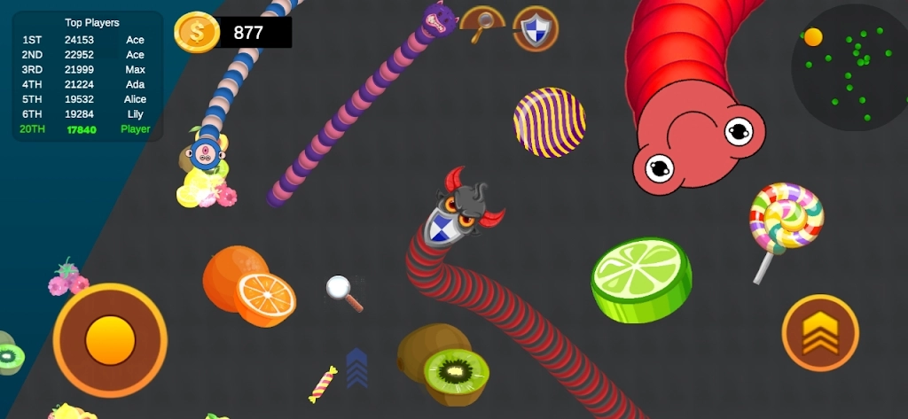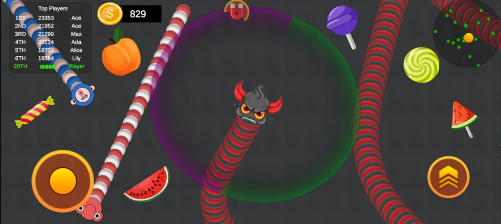 1.这款游戏的玩法非常简单,玩家只需操控蠕虫蛇不断吞食食物,使其变得越来越长。