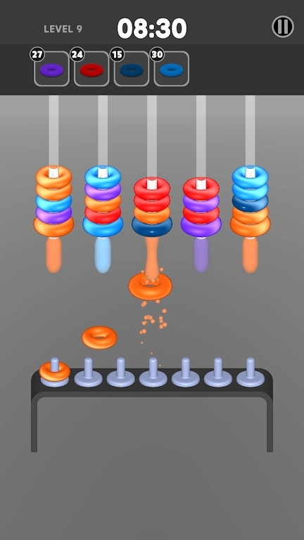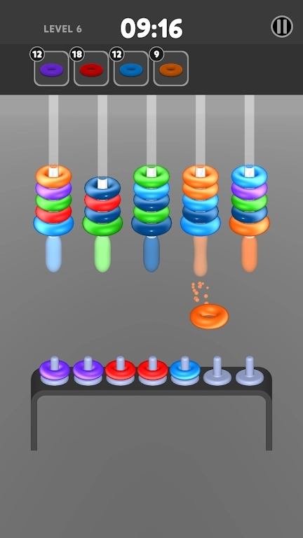 1、精彩的匹配趣味:玩家需依据色彩与尺度对圆环进行匹配,这类匹配趣味相当精彩。