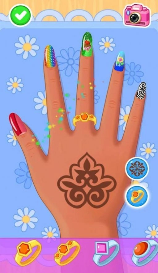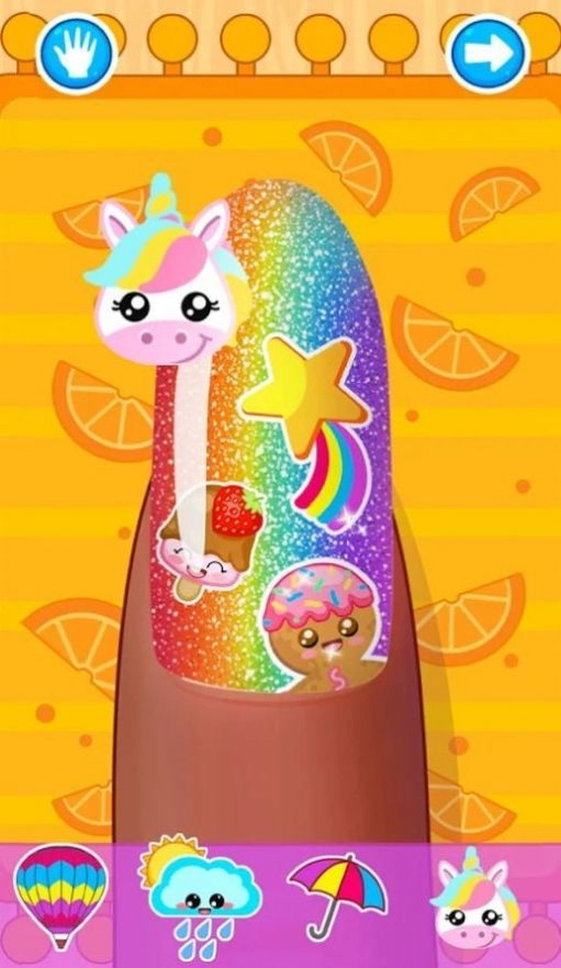 这是个美甲游戏。喜欢做美甲的玩家可以来这里试试这个好玩的游戏,一定会给你带来很多乐趣。美甲有很多种类型可以选择,也有很多道具可以随意使用。成为美甲专家,就在美甲沙龙!