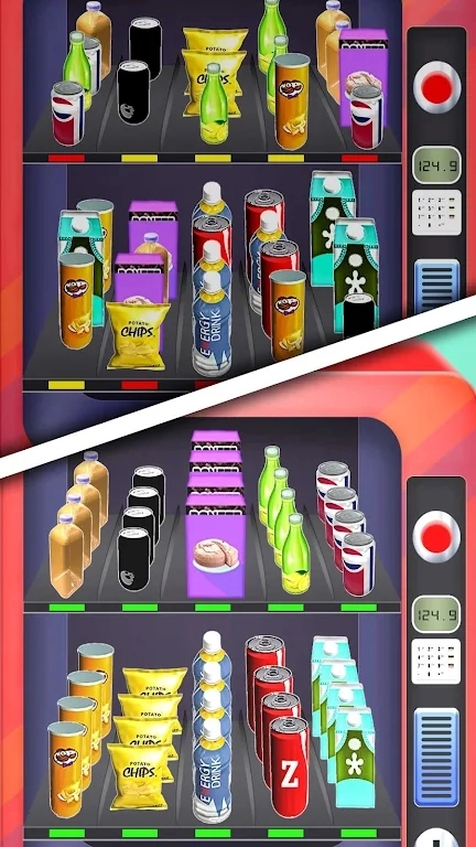 1、一致的自动售货机主题与分类排序闯关玩法,为玩家带来别样的挑战与乐趣;
