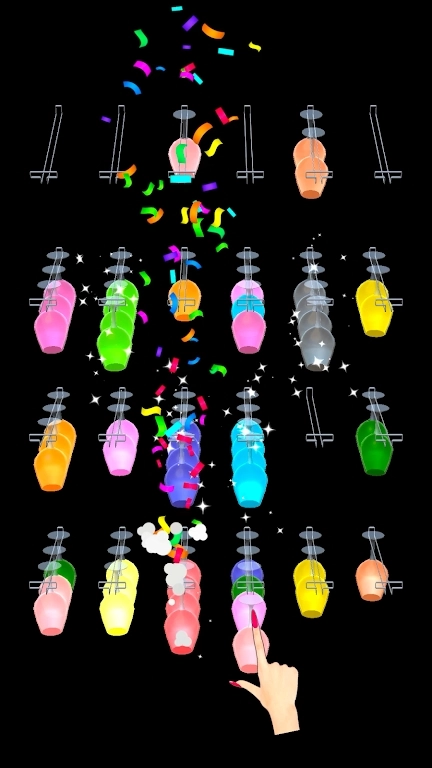 1.游戏包含多个关卡,难度会随着关卡推进逐步提升。玻璃杯分类的画面色彩十分鲜艳。