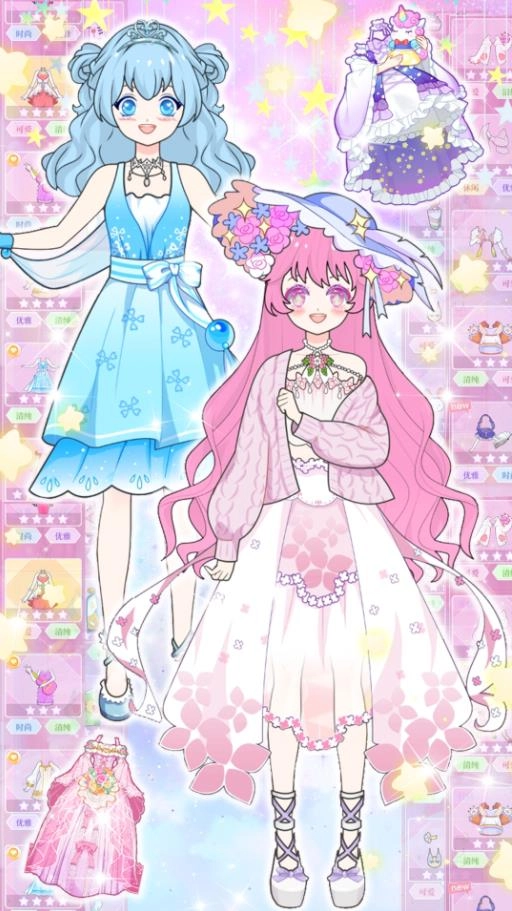 1、一起为魔法公主搭配舞会华丽礼服,选择华丽的裙子和闪亮的卷发,盛装出席。