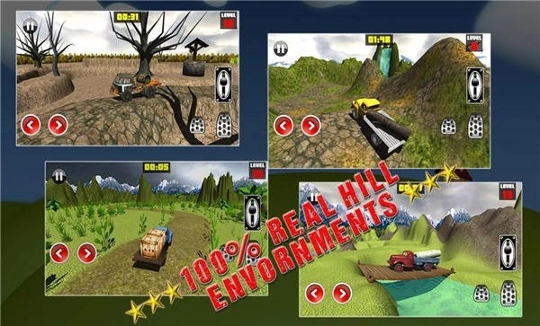 4.您将在这里挑战上坡和下坡、惊险的悬崖和山路,享受山地卡车最惊险刺激的驾驶体验。