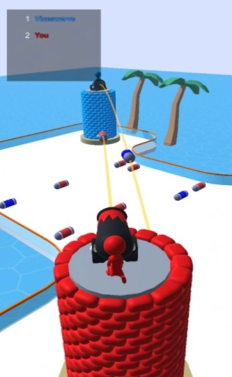 3、收集到一定数量的子弹后,就可以进入对应自己颜色的塔中,瞄准目标后会自动射击。
