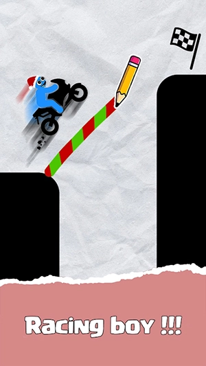 1、紧张刺激的障碍躲避,通过巧妙绘制线条,避开各类障碍物,守护摩托车的安全;