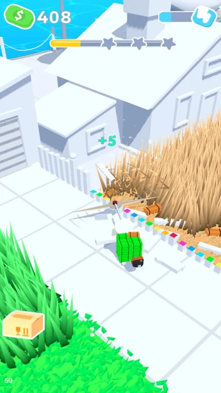 2、以及多样的不同的场景呈现,相当丰富的割草的趣味解锁;