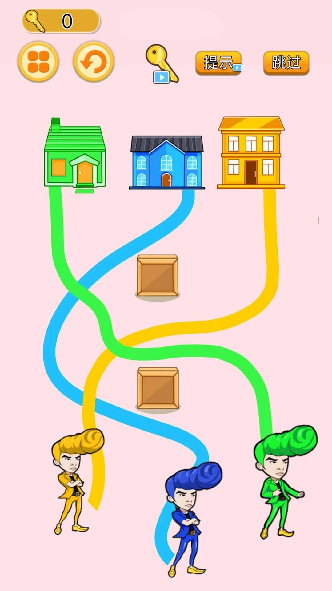 2、带来的惊喜比较同,一笔进行画完,通过连线,顺利帮助他们;