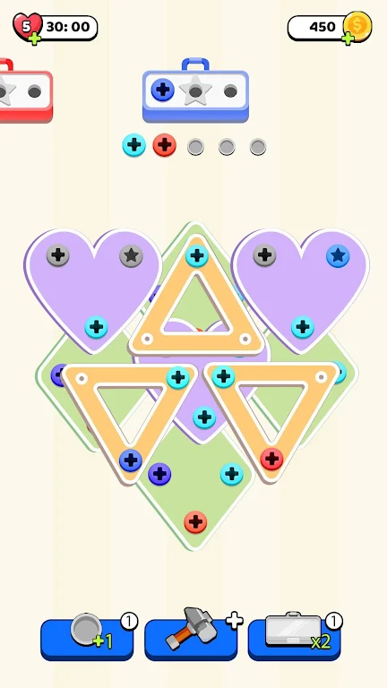 各位在闯关的时候还能选择使用提供的道具来帮助解开螺丝。