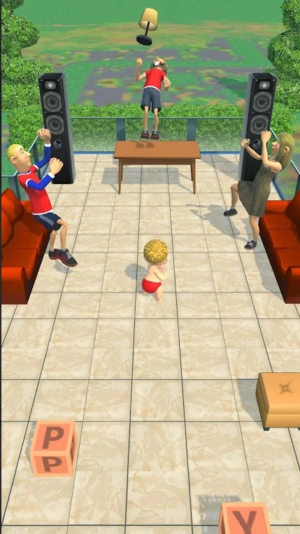 1、操作男孩人物,在不被发现的情况下尽可能多地搜集玩具,并将它们扔出窗外;