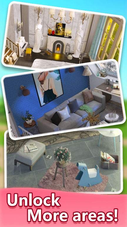 3、挑战不同的合并任务,挖掘更多隐藏的家居装饰元素。