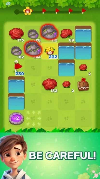 2、玩家需要利用花朵来解决问题,关卡一步步提高挑战难度,获得越来越高的收益;