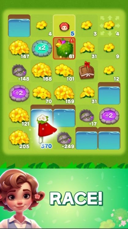 1、玩家需要在游戏中合并相同等级的花朵,不断升级花园,获得更高的分数和奖励;