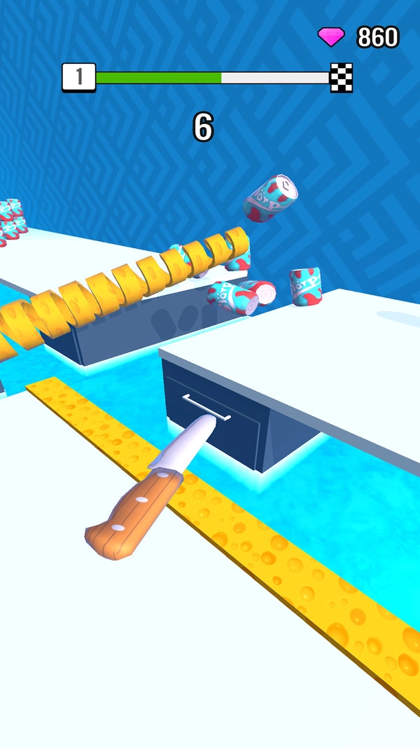 创新玩法将芝士条进行切割,滑动控制着小刀不断切割,小心避开危险的障碍,积攒更长的芝士条将旁边的罐子都撞倒,获得更多的通关奖励,尽情来享受闯关乐趣。指尖闯关通过不同的考验,多种冒险玩法等你体验,敏捷行动通过不同挑战,欢乐闯关解锁新的玩法。