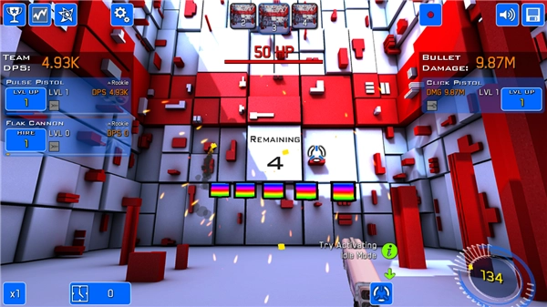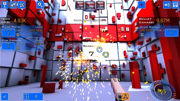 为了逃出去必须用手中的枪械将闪现红点全部击碎。每次击破后都能获得少量金钱,可以使用它们升级武器后购买全新技能哟!