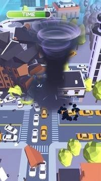 画面风格简洁明亮,所有场景清晰可见,玩家需要操控龙卷风破坏沿途的一切,目标是摧毁整个城市。