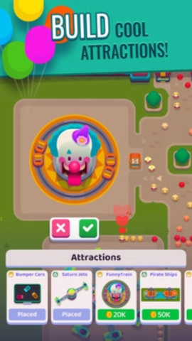 游戏的操作简单,自由度非常高,放置型玩法可以在玩家离线的时候,游乐园继续赚钱。喜欢这款游戏的小朋友快来试试吧。